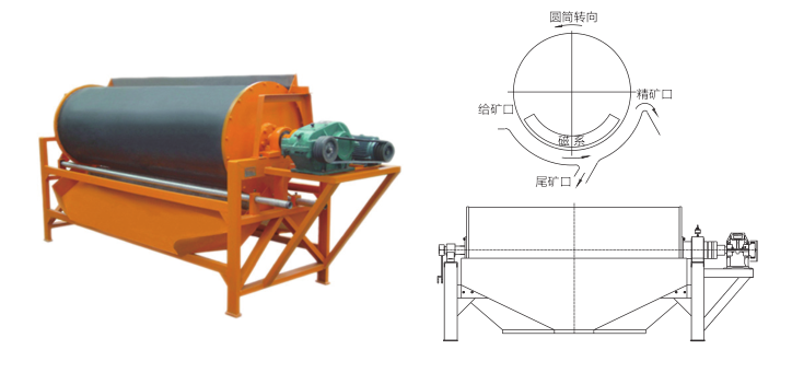 CTS型順流濕式預(yù)選機(jī)適用于濕式選別礦石粒度為6~0mm的較粗粒度強(qiáng)磁性物料的預(yù)選和精選,或者除去非磁性礦物中混雜的強(qiáng)磁性礦物。本機(jī)可以連續(xù)給礦和排礦,磁場(chǎng)強(qiáng)度大,磁場(chǎng)梯度高,工作間隙大,具有較高的處理能力。亦可多臺(tái)串連工作。二、示意圖