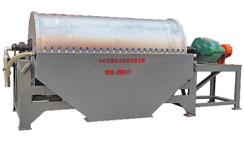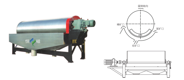 CTN型全逆流濕式磁選機(jī)其核心技術(shù)采用計(jì)算機(jī)模擬設(shè)計(jì)磁路,使磁選區(qū)的磁場(chǎng)分布更均勻,無空磁區(qū),磁系大包角設(shè)計(jì),滾筒表面磁場(chǎng)強(qiáng)度可高達(dá)6000gs,技術(shù)可靠。槽體和滾筒表面做特殊耐磨處理,耐磨有多種方式可選,使整機(jī)壽命大大延長(zhǎng)。二、示意圖