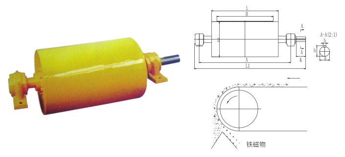 RCT型全磁滾筒與RCTG系列等同,亦稱磁滑輪或干式大塊磁選機(jī)。其內(nèi)部采用高性能強(qiáng)磁材料組成強(qiáng)力磁系,具有磁場強(qiáng)度高、深度大、結(jié)構(gòu)簡單、使用方便、不需要維修、不消耗電力,常年使用退磁率小等特點(diǎn)。可用于水泥、磁選、礦山、鋼鐵、化工、耐火材料、垃圾處理等行業(yè)的選鐵與TD-75型、AD-80型通用固定式皮帶輸送機(jī)配套使用代替主動(dòng)輪,也可與專用皮帶輸送機(jī)配套。