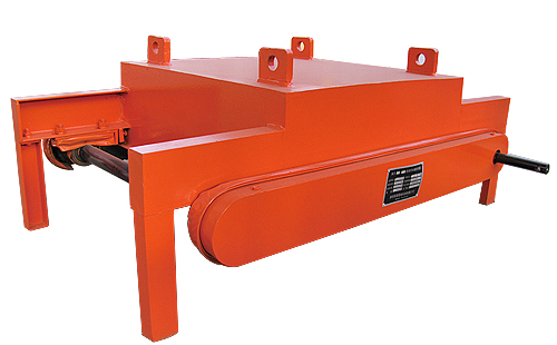 RCYP型永磁手動(dòng)自卸式除鐵器適用于輸料皮帶窄,物料薄,含雜鐵少的場(chǎng)合。RCYP型永磁手動(dòng)自卸式除鐵器結(jié)構(gòu)簡單,運(yùn)行可靠,經(jīng)濟(jì)實(shí)用,免維護(hù),無任何噪聲。當(dāng)磁鐵底部吸附的鐵磁性雜物累積到一定程度時(shí),人工搖動(dòng)手柄驅(qū)動(dòng)刮板,清除廢鐵。