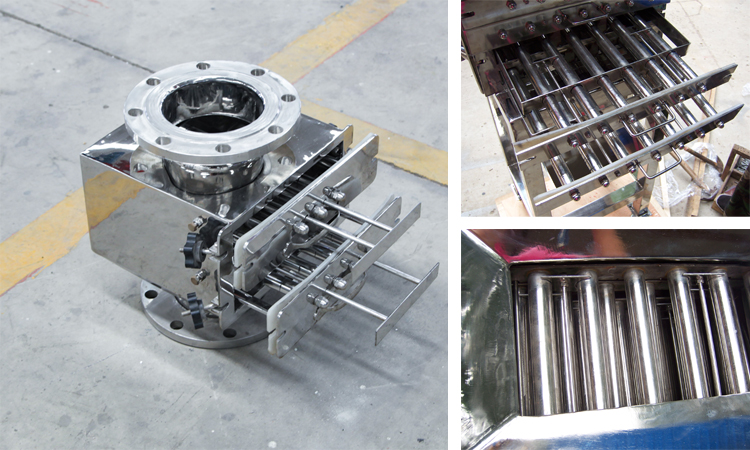 ◇CBS型抽屜式磁性過濾器主要用于如食品、制藥、化學(xué)、石英砂、陶瓷等高敏感應(yīng)用。其強(qiáng)力耐磨的機(jī)殼由防銹不銹鋼制成。所有表面和焊接頭都無縫合線而且高度鏡面磨光。其強(qiáng)力的磁性甚至可以清除流動、干燥的、流動性好、粉狀的、細(xì)小顆粒(顆粒直徑<6mm),薄片狀物料中的鐵磁性物質(zhì)。◇卸鐵方式:手動清除。
